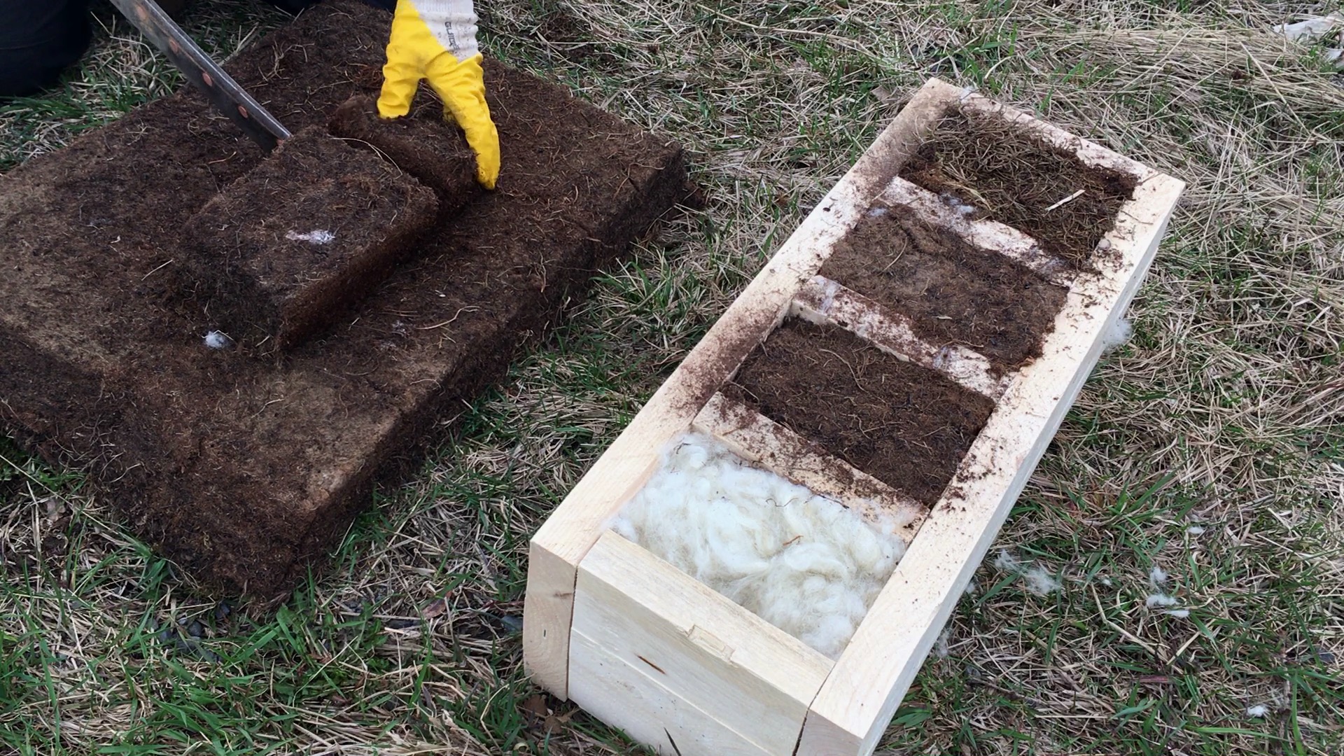 Other materials sourced during this field visit to Iceland include washed raw wool from Blönduós (for insulation on the exterior side) as well as turf panels from the Skagafjörður region (to add thermal mass to the interior of the wall).